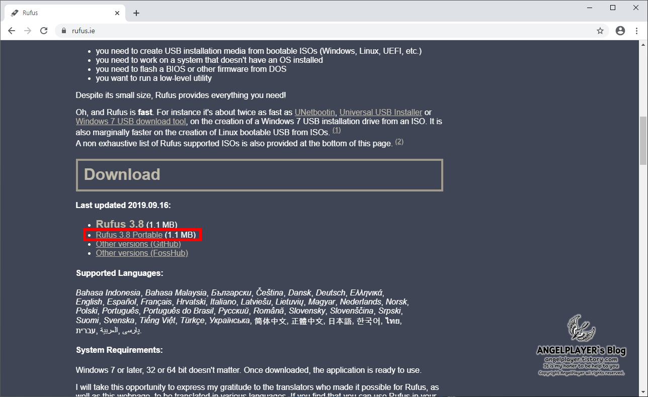 다음 설치 프로그램인 Rufus를 받아보도록 하겠습니다.
