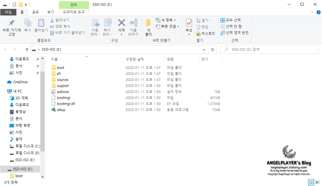 이제 부팅 USB를 이용하여 윈도우 10을 설치or초기화 하실 수 있습니다.