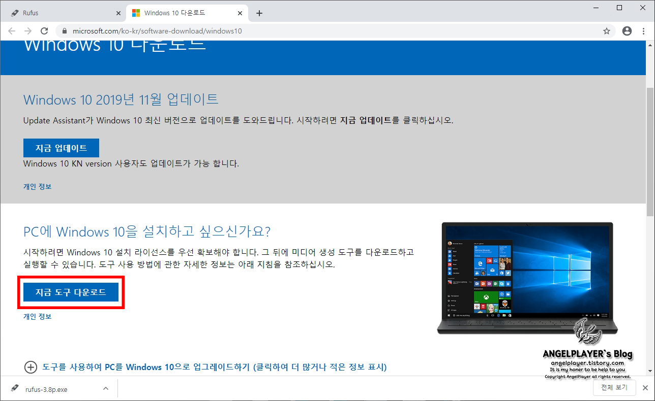 ※ 윈도우 10 부팅 USB 제작법은 이미 제 블로그에 포스트한 적이 있으나, 제작할 떄 쓰이는 프로그램인 Rufus가 최근 업데이트 되어 최신 버전으로 바꾸어달라는 요청이 있어 다시 작성합니다.