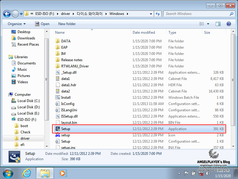 폴더 내 [Setup] 파일을 실행시켜 줍니다.