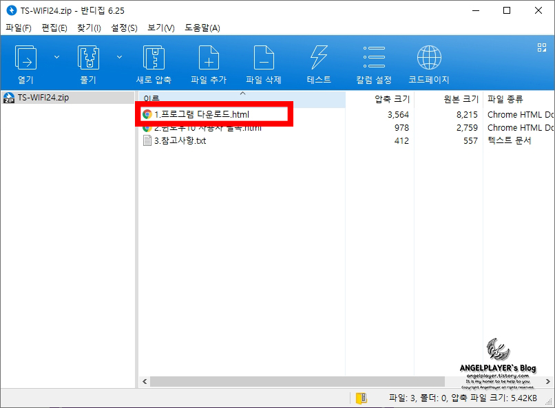 다운로드 한 압축파일을 열어보면 다시 다운로드 링크(html 파일)가 나타납니다.