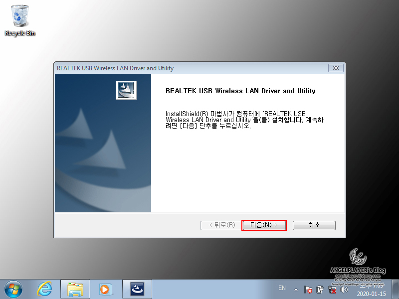 윈도우 7은 드라이버를 알아서 잡아주지 못하기 때문에 수동으로 설치가 필요합니다.