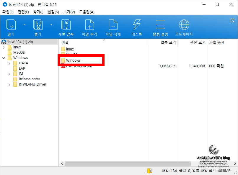 다시 다운받은 파일을 열어보면 각 OS별 설치 파일이 들어있는데요, 저는 윈도우에서 작업을 진행할 것이기 때문에 Windows 폴더만 USB로 옮겨보도록 하겠습니다.
