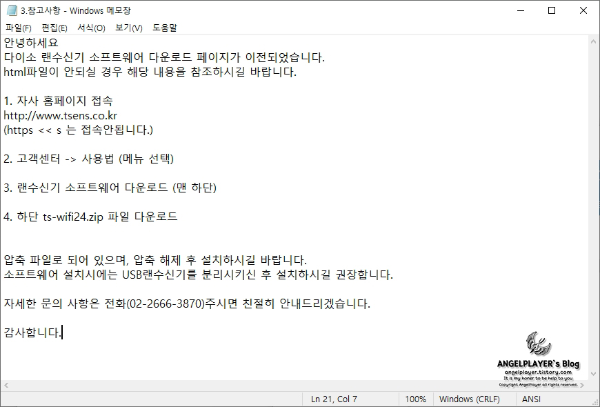 ※ 참고사항에 홈페이지가 변경되었다고 하는데, 설명서에 적힌 주소로도 다운로드 가능합니다.